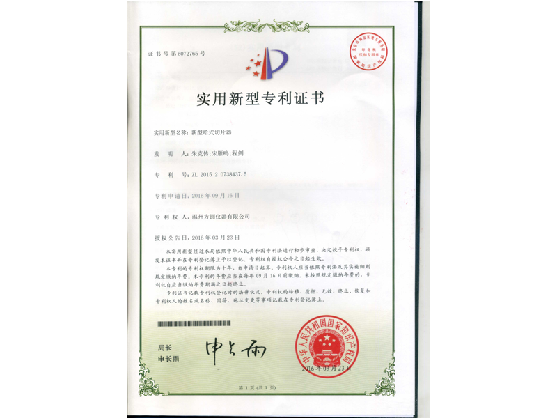 中國實用新型專利:新型哈氏切片器(ZL 2015 2 0738437.5)